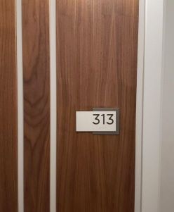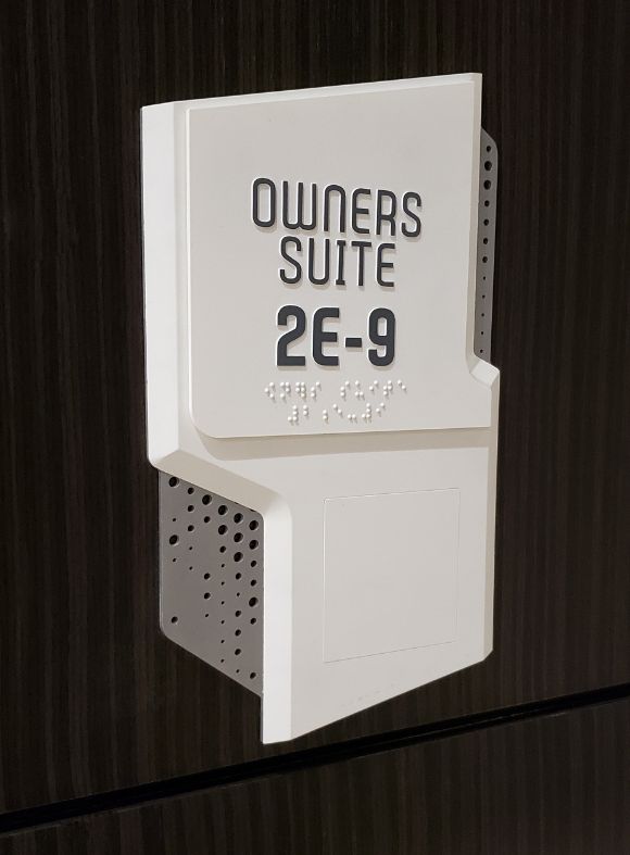 Identification for each of the executive suites in the stadium with a removable space for donor and/or owner logos.