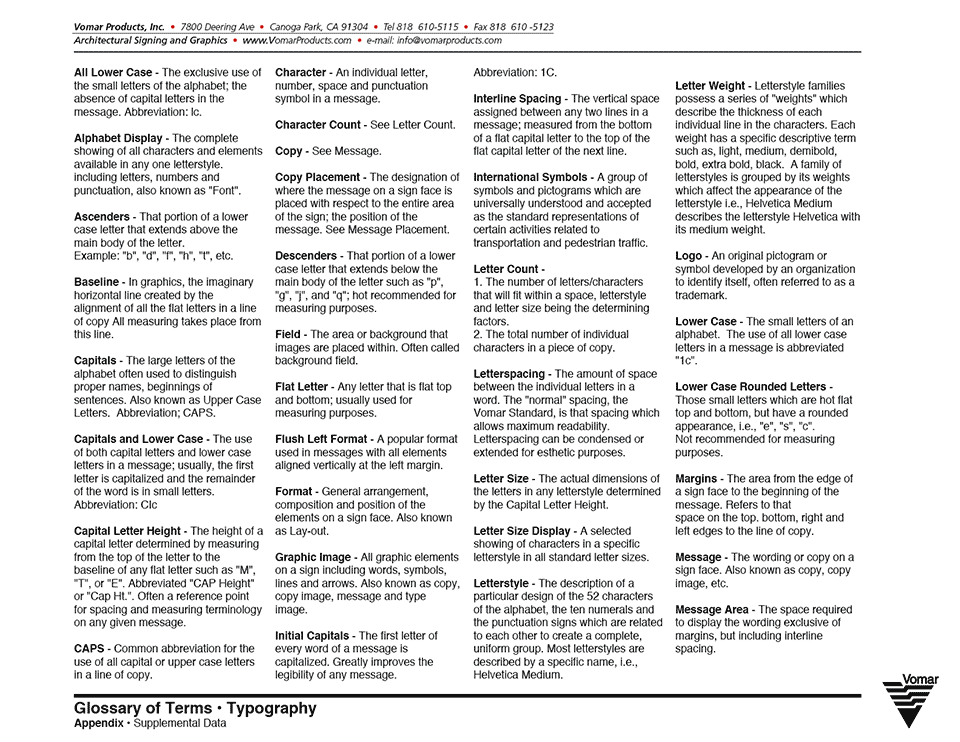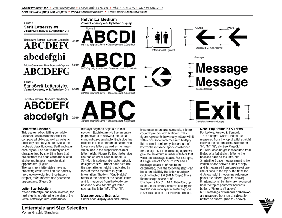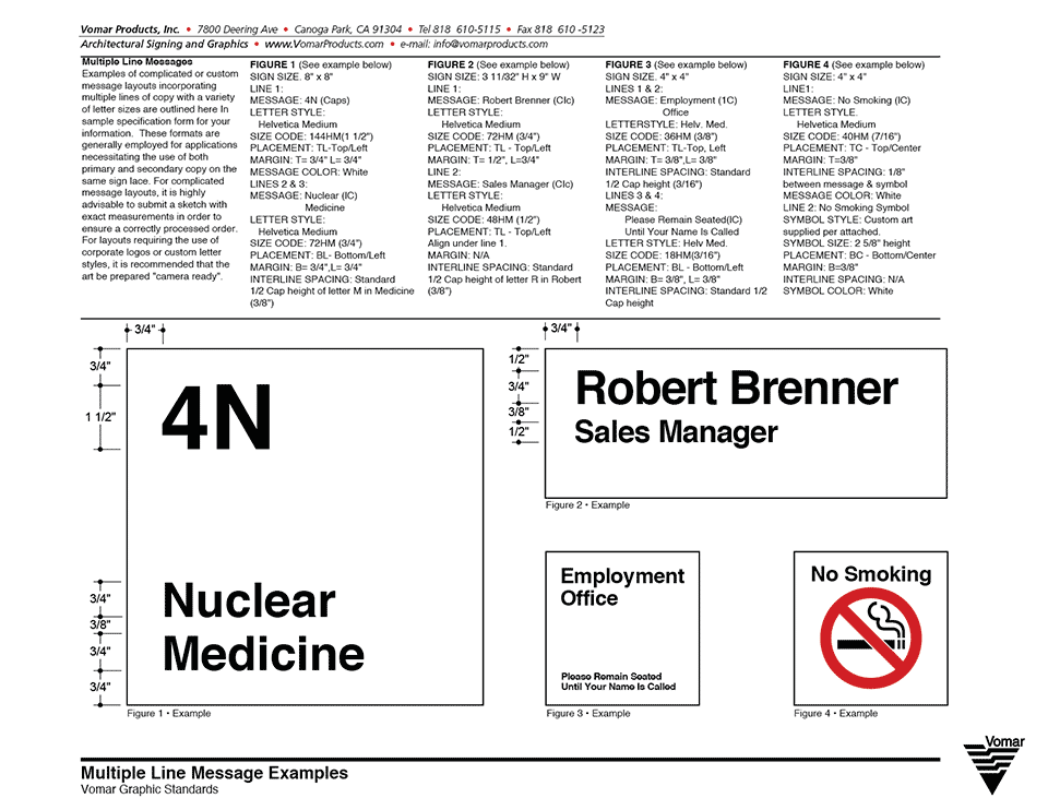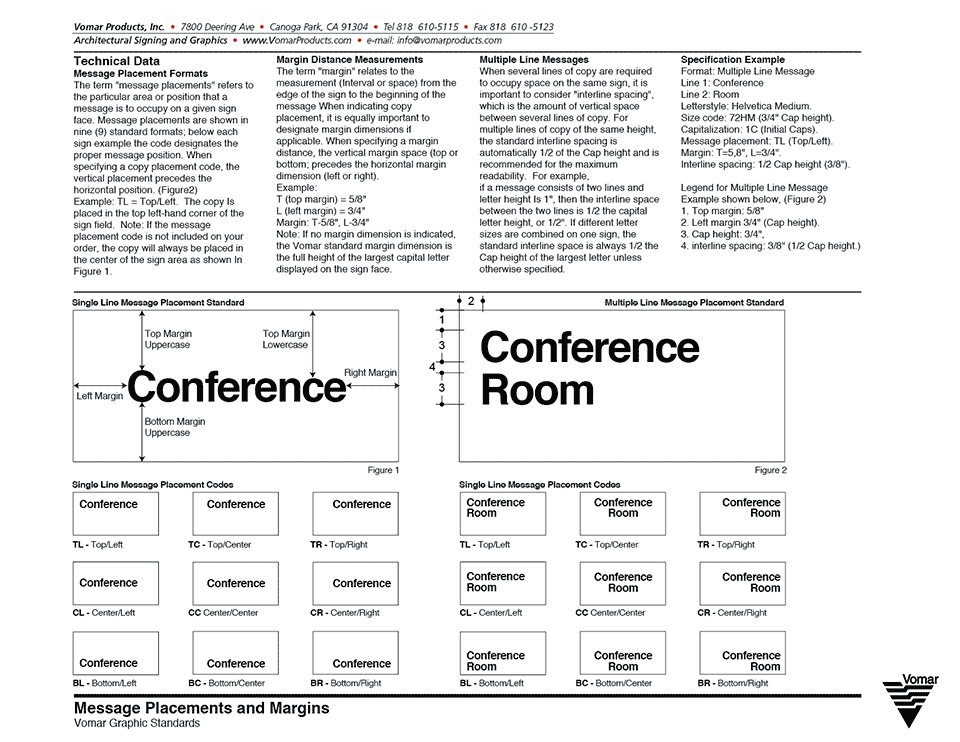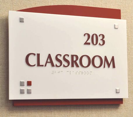 Vomar small sign plaques and panels can be fabricated in custom configurations to meet the design intent, or may be a combination of our standard units. Most of the interior ID and directional plaques we manufacture are special and custom units designed by the graphic designer or architect, but are usually a mixture of our processes and a custom design.