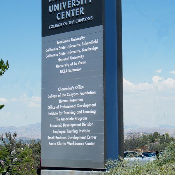 Vomar Products has had the opportunity to work on many extensive manufacturing and installation signage programs for schools and universities across the country. Some of these project clients include The University of Southern California, Pepperdine University, The California Institute of Technology, Oregon State University, Glendale College, Orange County College, several California State University campuses, and all of the major University of California campuses.