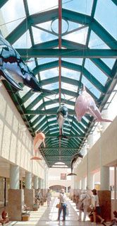 This complex is located in Saipan, Northern Mariana Islands in the south Pacific. Vomar Products participated in the overall design and implementation of the project and the manufacturing, installation and engineering. This was a unique project and required the fabrication of twenty full-size fiberglass dolphins in various positions. All exterior signage was manufactured to withstand 200 mph wind loads.