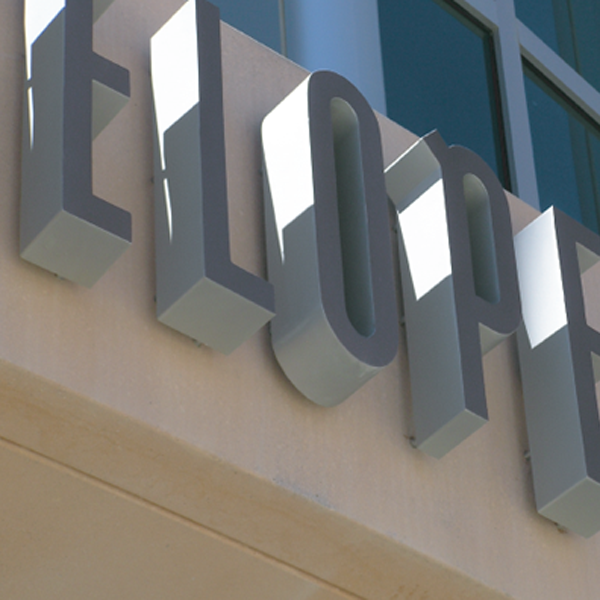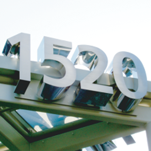 Dimensional lettering with beveled edges was fabricated and installed throughout the project.